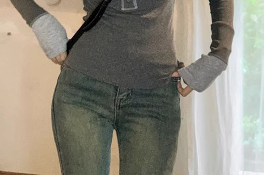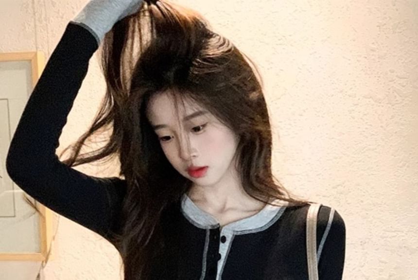 Long-Sleeve Henley Two Tone Tee