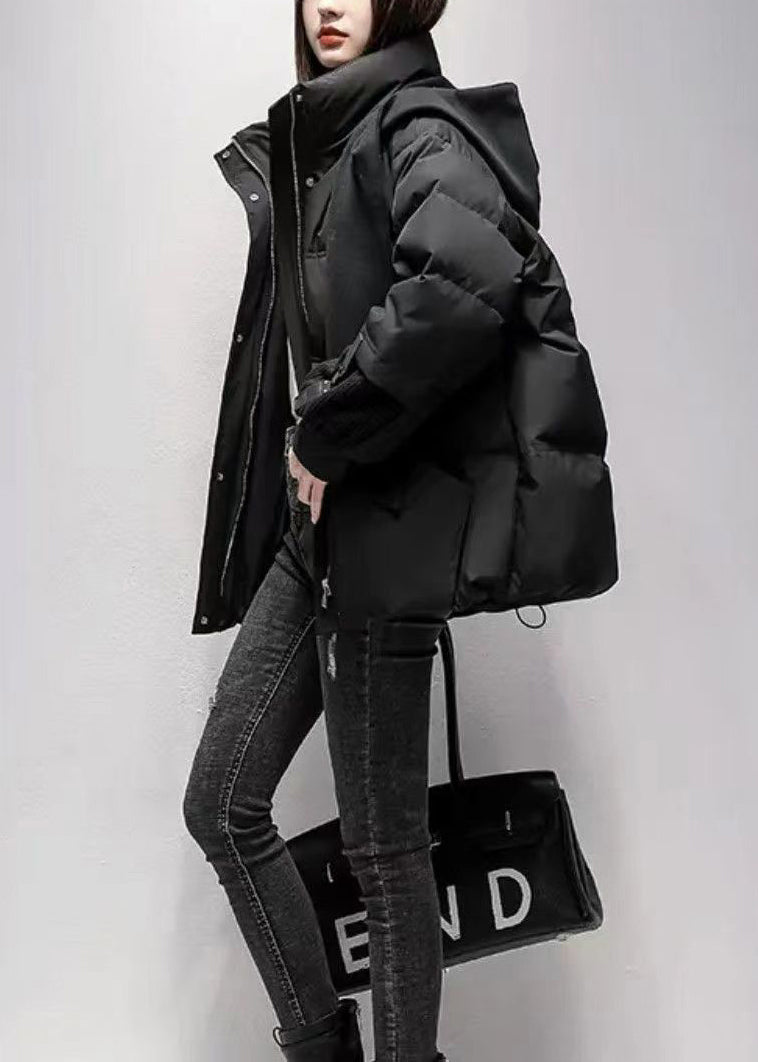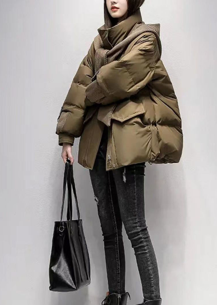 Loose Grey Zip Up Pockets Fine Cotton Filled Witner Jacket TD038