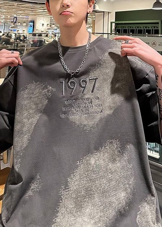 Casual White Embroideried Tie Dye Cotton T Shirt Men Summer