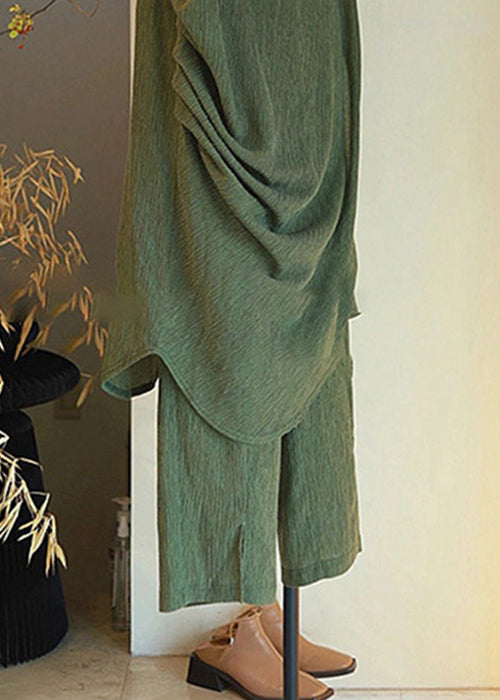 Women Green Asymmetrical Button Cotton Two Pieces Set Sleeveless