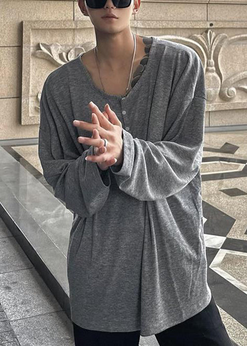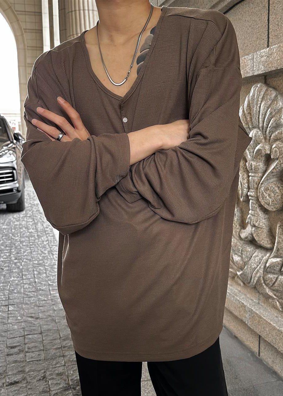 Simple T Cotton Spring Coffee Neck Button Solid Shirts Mens O