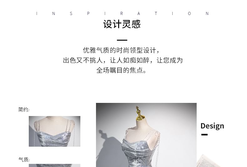 Spaghetti Strap Sequin Mermaid Evening Gown