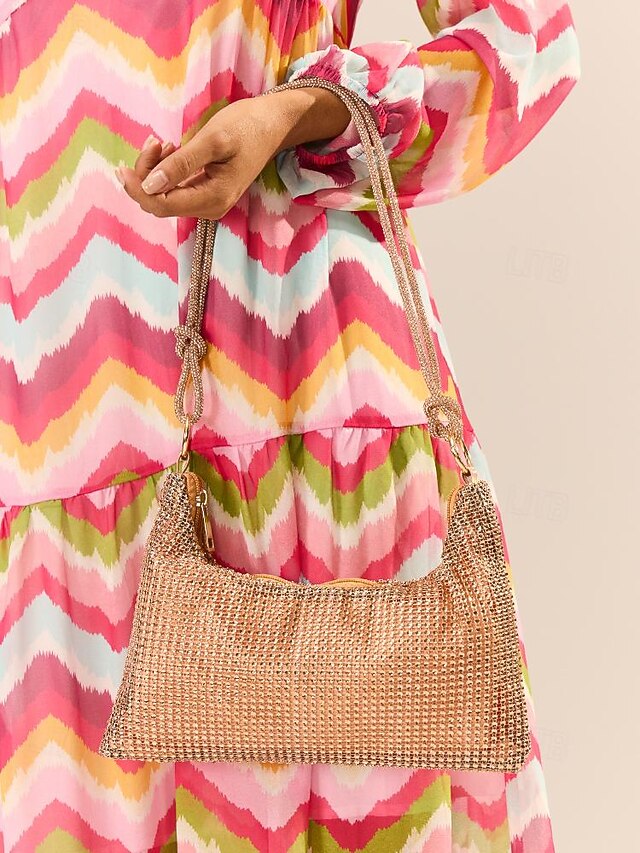 Gender: Women's, Type: Baguette Bag, Evening Bag, Material: Gretel Materials, Embellishment: Rhinestone, Zipper, Pattern: Solid Color, Occasion: Wedding Party, Party, Daily, Width (cm): 2, Height (cm): 13, Length (cm): 29, Function: Lightweight, Multi Carry, Category: Shoulder Bag,