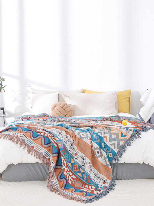 Couverture d'été en coton à pompons ethniques en jacquard AS1033