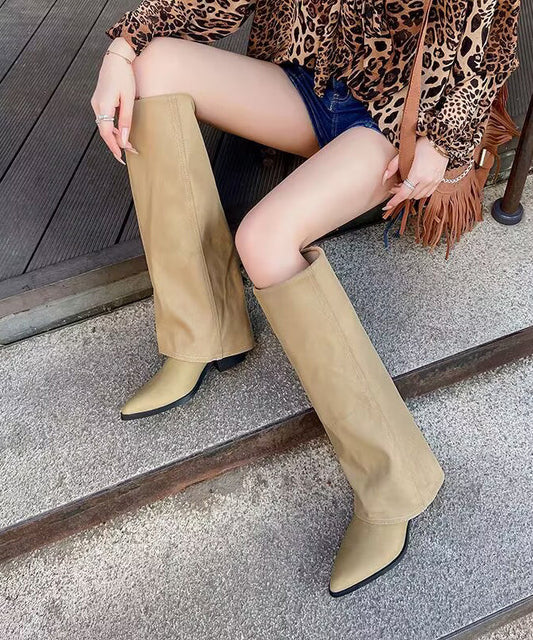 European And American Style Navy Denim Fabric Splicing Boots QK059