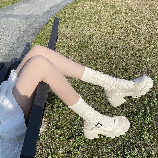 Escarpins Mary Jane à talons épais et plateforme fleurie