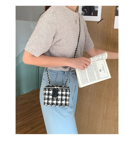 Plaid Chain Strap Crossbody Bag