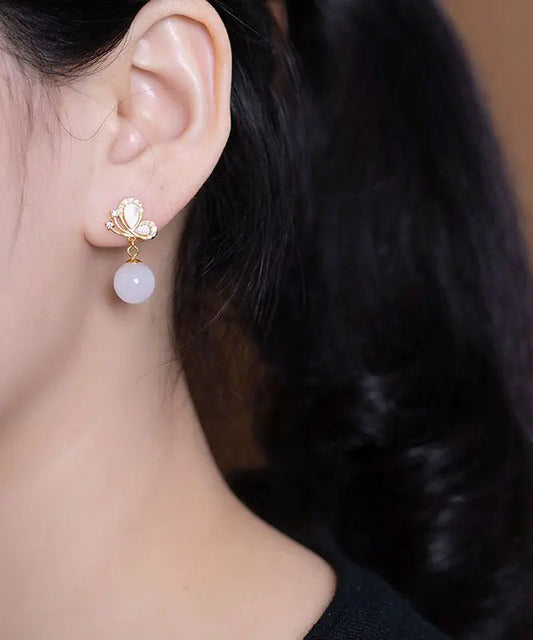Boucles d'oreilles pendantes en argent sterling avec papillon en jade et zircon