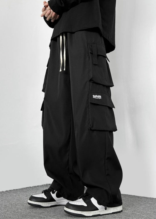 Green Cotton Pockets Mens Drawstring Casual Army Loose Pants