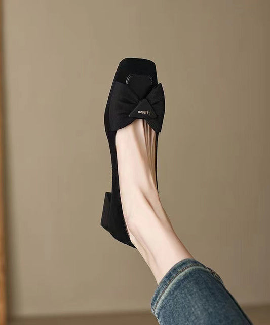 New Brown Suede Penny Loafers Splicing Bow Square Toe RI034