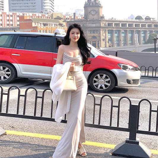 Spaghetti Strap Cowl Neck Plain Mermaid Evening Gown