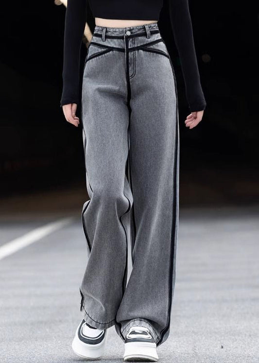 Vintage Grey Pockets High Waist Warm Fleece Pants Spring YW050