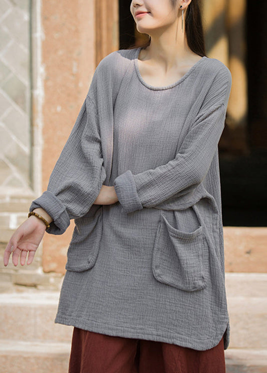 Plus Size Green O Neck Pockets Cotton T Shirt Top Spring TH025