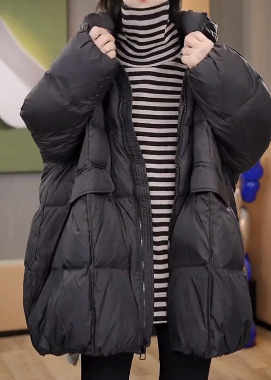 Fine Black Hooded Pockets Slim Fit Duck Down Parkaer Winter TD043