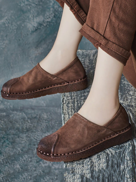 Women Vintage Leather Spliced Flat Shoes AX1062