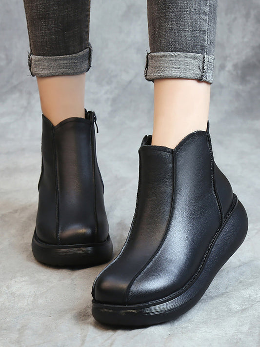 Women Solid Genuine Leather Winter Zipper Low Heel Boots AH1082