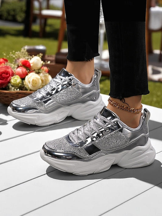 Sneakers with Metallic Platform Women's Chunky Glitter
