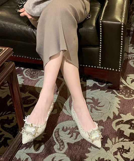 Beige Feet Shoes French Toe Flat Splicing Zircon Pointed