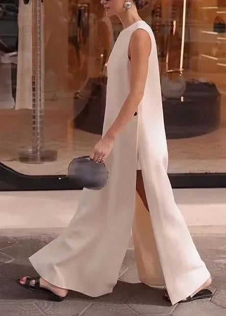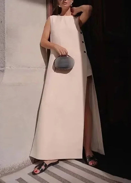 Boho White Side Open Cotton A Line Dress Sleeveless TL008