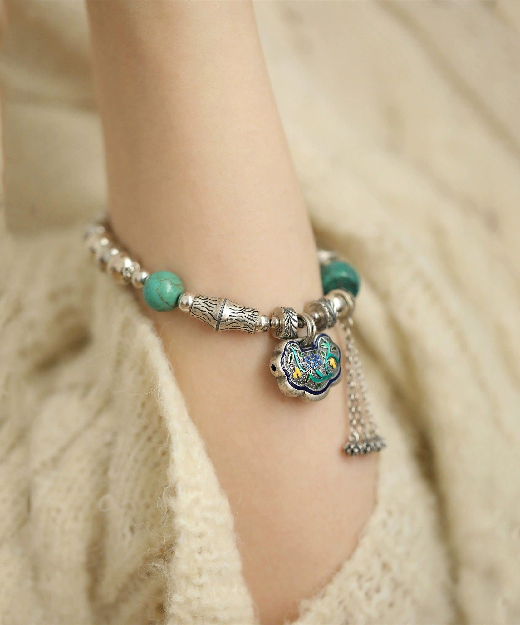 Boutique Silk Sterling Silver Turquoise Bracelets Charm Bracelet