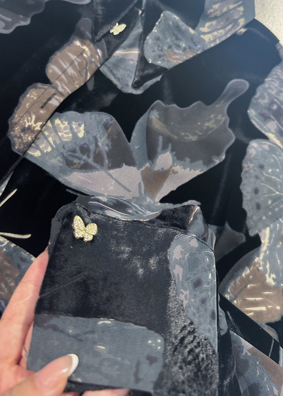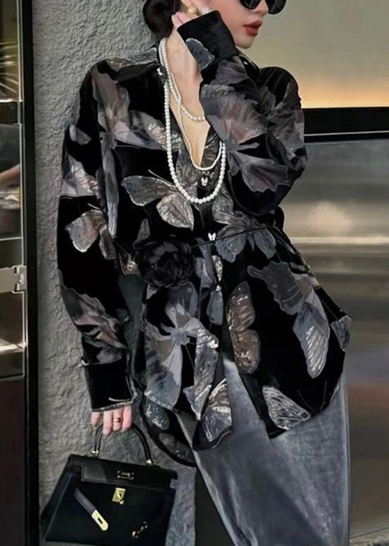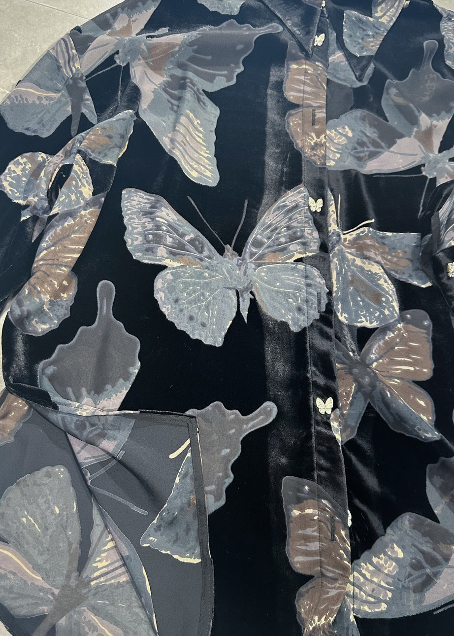 Chic Black Peter Pan Collar Butterfly Silk Velour Top Fall WP033