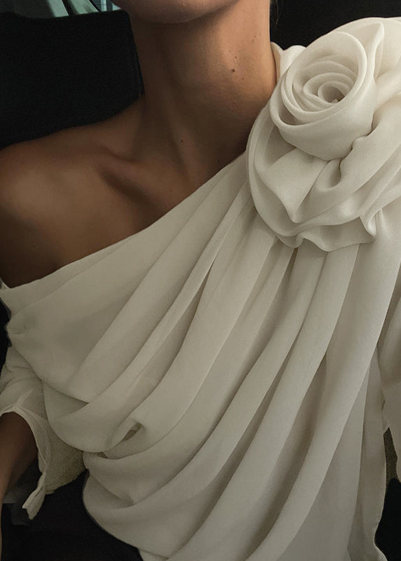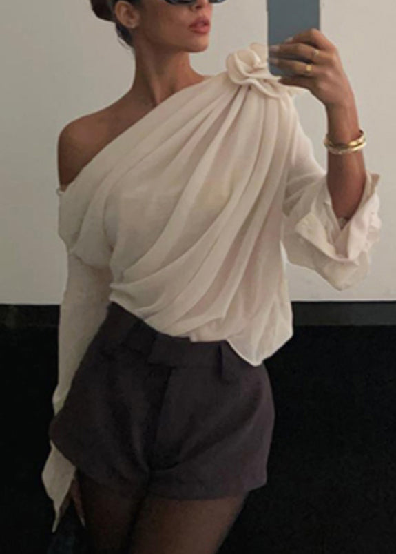 Brief Apricot Floral One Shoulder Chiffon Top Spring