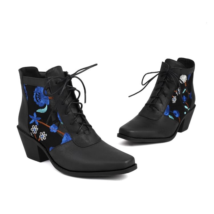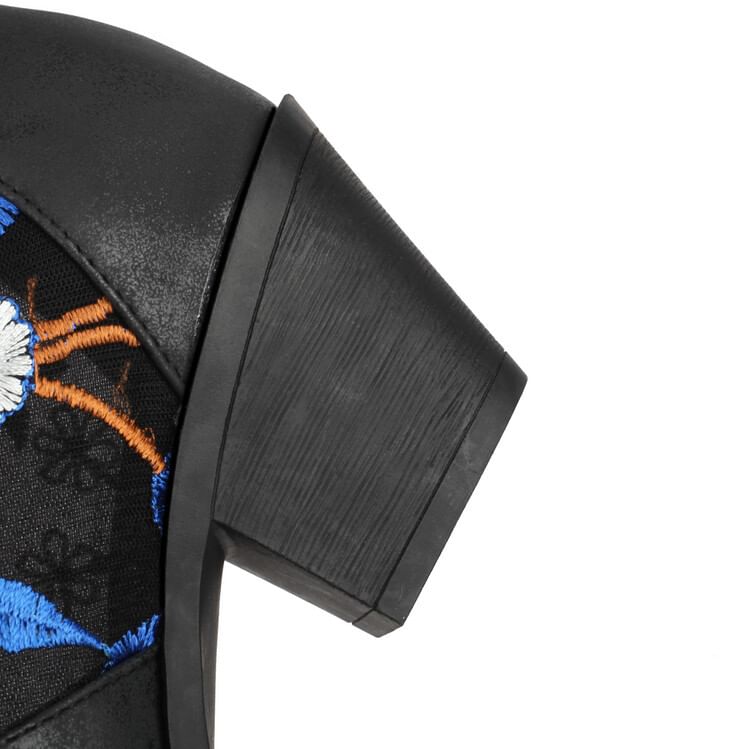 Chunky Heel Floral Embroidered Mesh Panel Lace