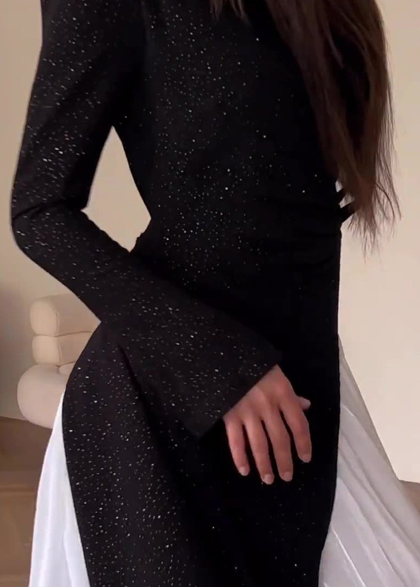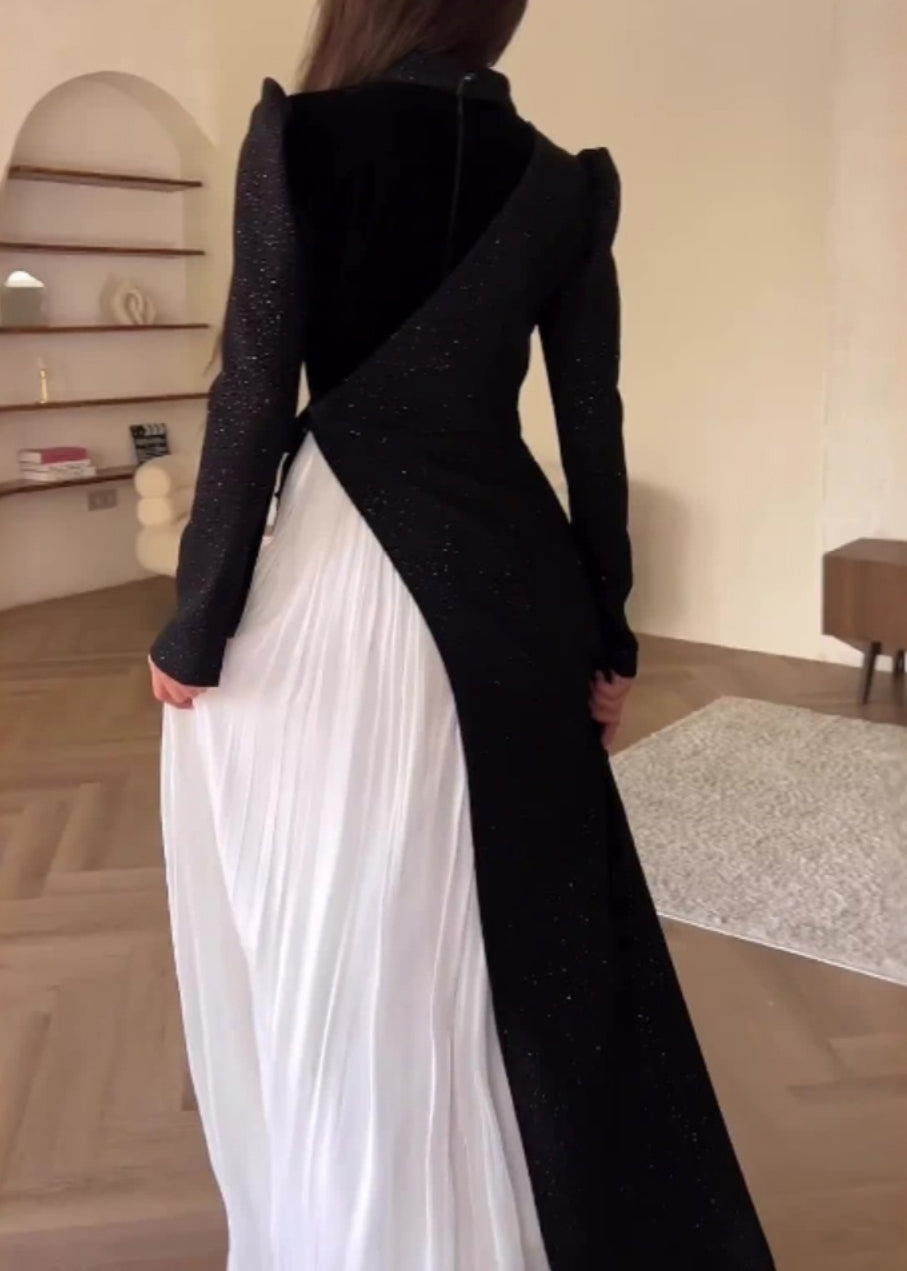 This luxurious dress showcases elegant colorblocking, artfully crafted patchwork, and a unique wrinkled texture for a sophisticated and exclusive look. The illusion of a two-piece design adds a touch of high fashion to this timeless piece. Make a statement in this dress, perfect for any upscale occasion.