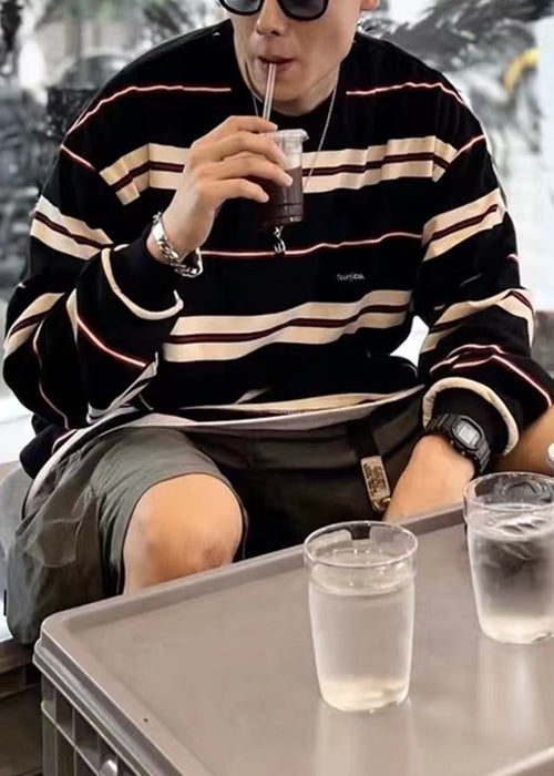 French Mens Red T Striped O-Neck Cotton Spring Shirts
