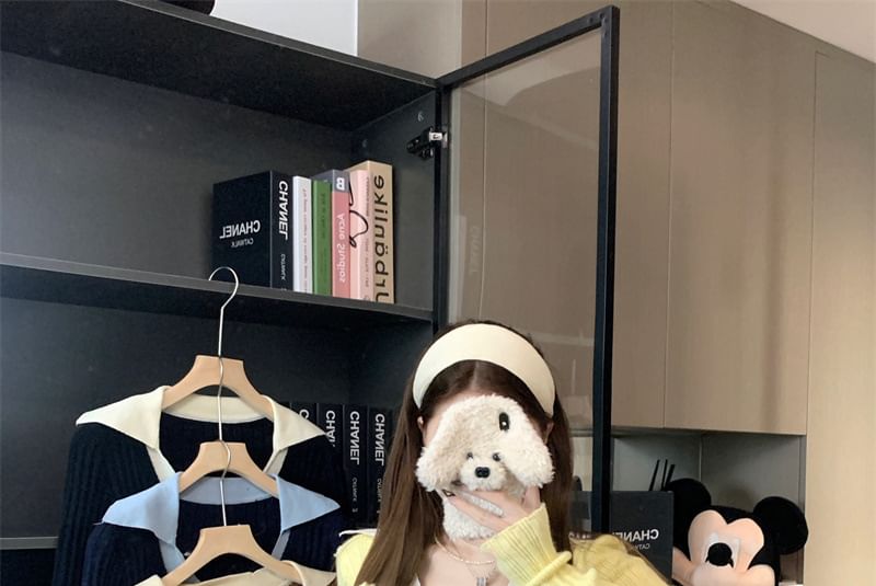 Long Sleeve V-Neck Collared Mock Two Piece Button Knit Top