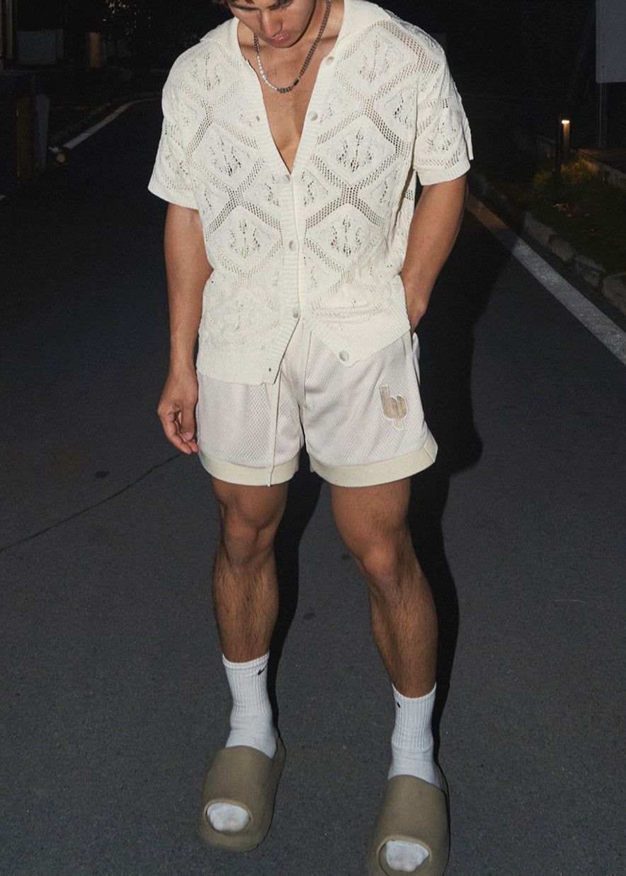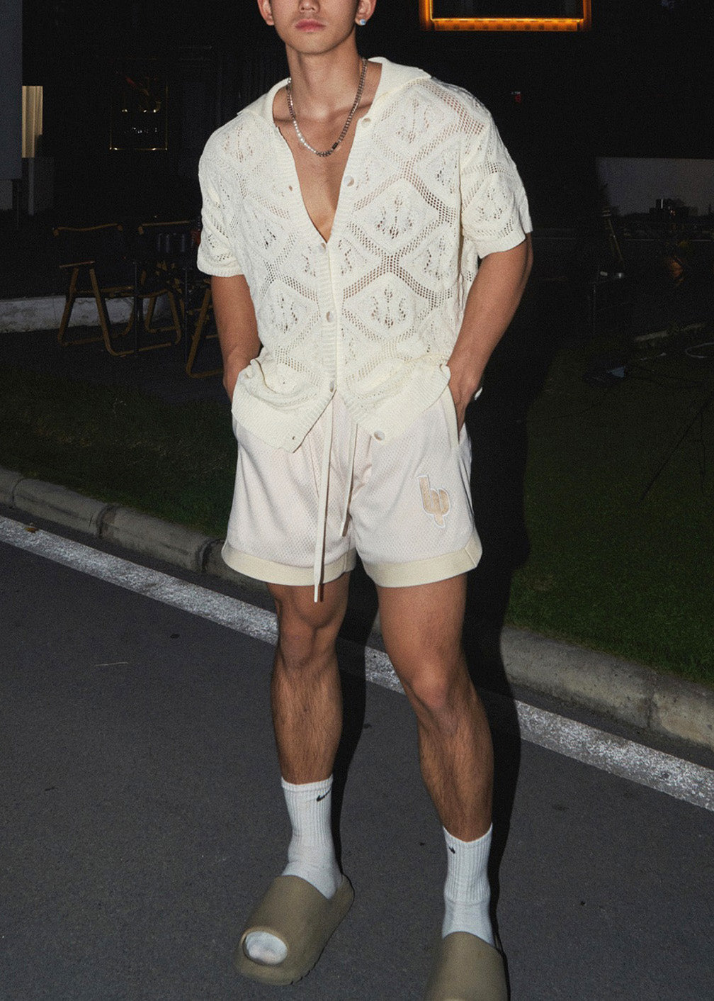 Boutique White V Neck Hollow Out Knit Polo Shirt Men Casual Clothing Summer