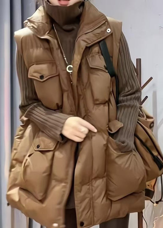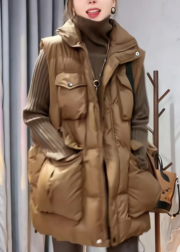 New Coffee Zip Up Pockets Patchwork Fine Cotton Filled Vest Sleeveless TD035