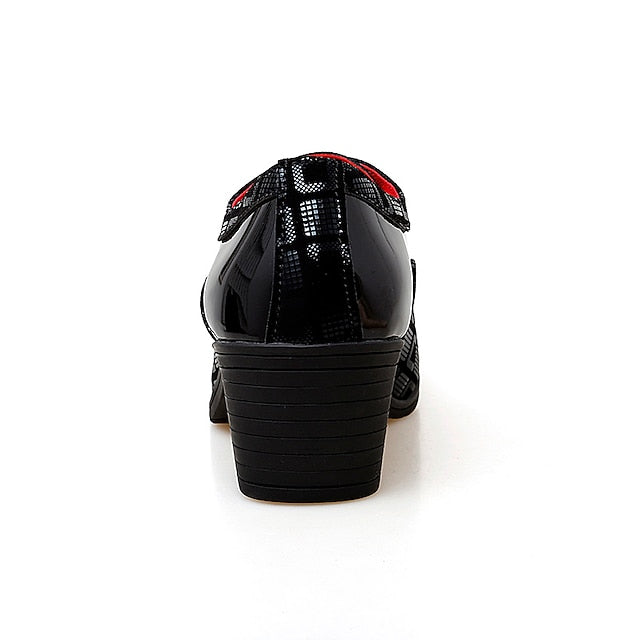 Men's Red and Black Patent Leather Block Heel Oxford Shoes