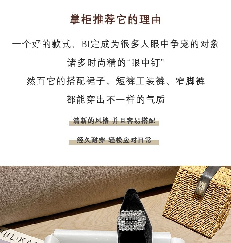 Pointed Toe Rhinestone Buckle Wedge Pumps