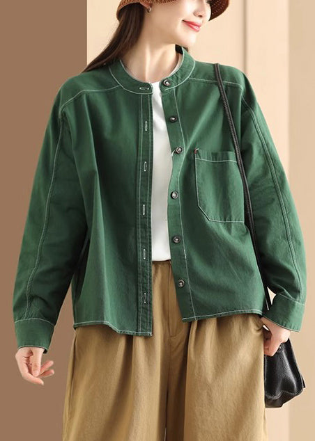 Style Grass Green Oversized Cotton Shirt Top Spring TM018