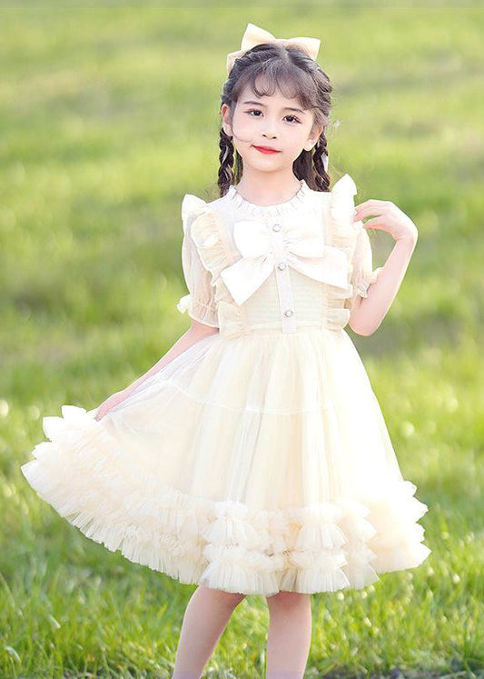 2024 Nouvelle Robe Maxi Rose À Col Rond Avec Volants Et Nœud Papillon En Tulle Pour Enfants Été EW022