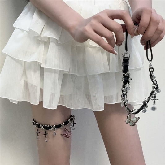 Butterfly Faux Crystal Phone Strap with Lanyard Pad