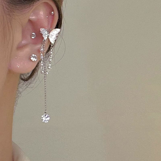 Butterfly Faux Cat Eye Stone Rhinestone Sterling Silver Stud Earring