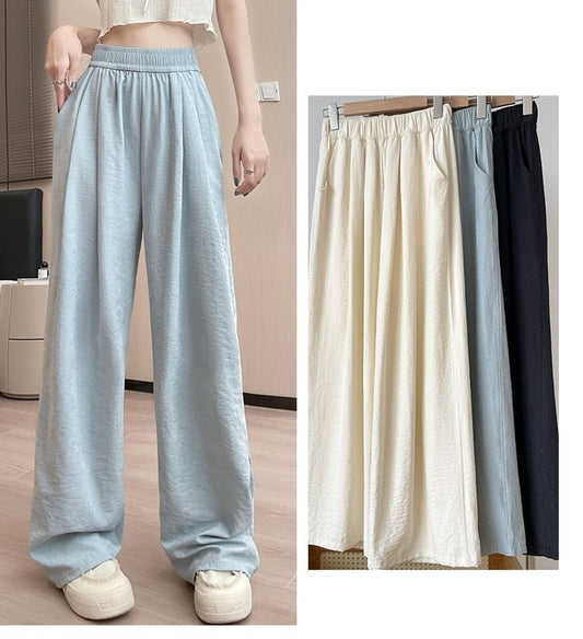 High Rise Plain Wide Leg Pants (Various Designs)