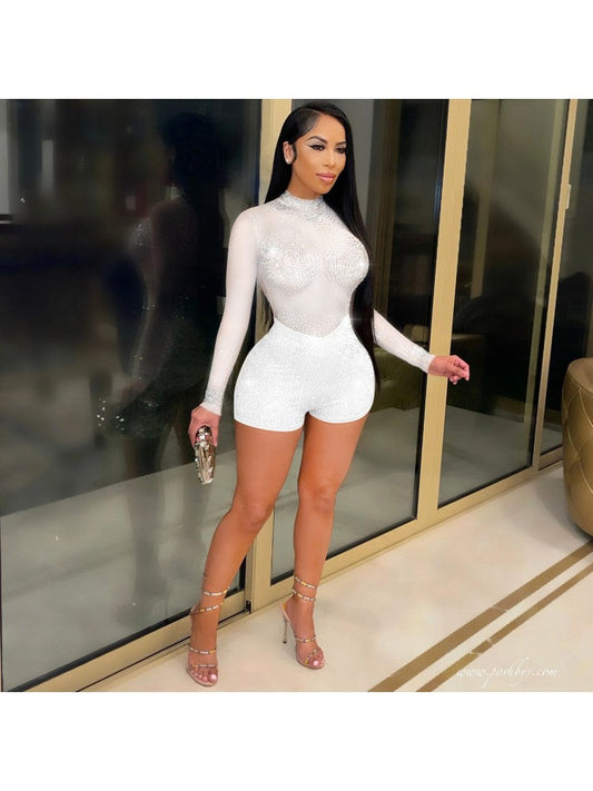 Combinaison moulante transparente à manches longues en gaze de perçage à chaud ZN5