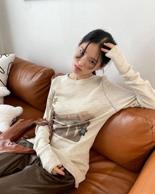Sweat-shirt décontracté à col ras du cou et manches raglan imprimé cheval GA22