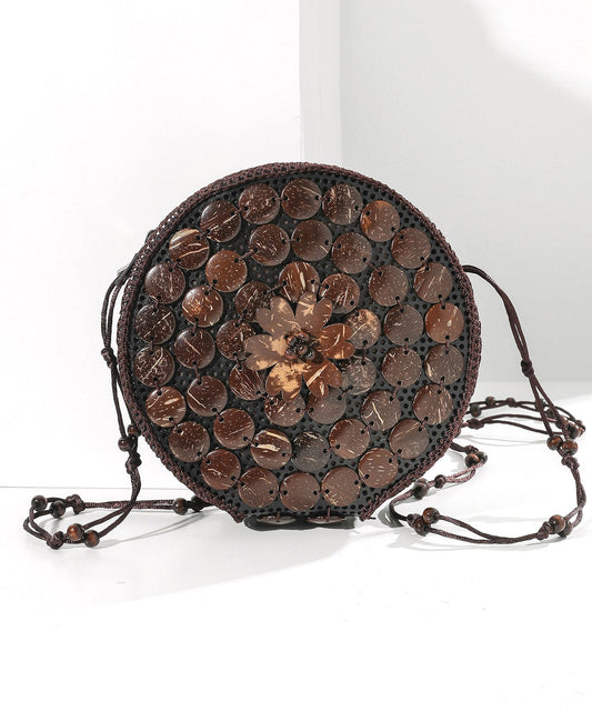 Sac messager circulaire en patchwork de bois fait main Boho HJ1051