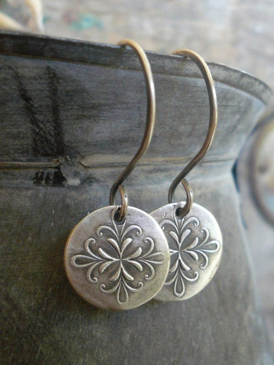 Boucles d'oreilles vintage à motifs floraux ethniques naturels en relief, bijoux de vacances bohème QAR86