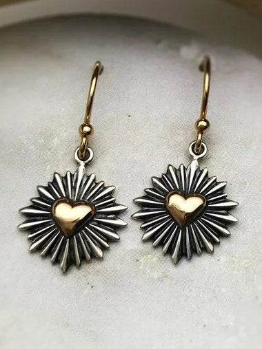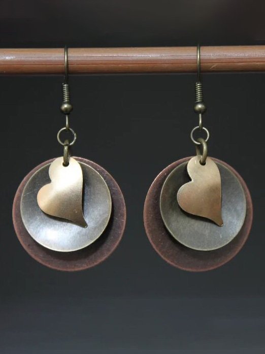 Boucles d'oreilles pendantes en forme de cœur de couleur contrastée rétro de style ethnique, bijoux anciens QAG37