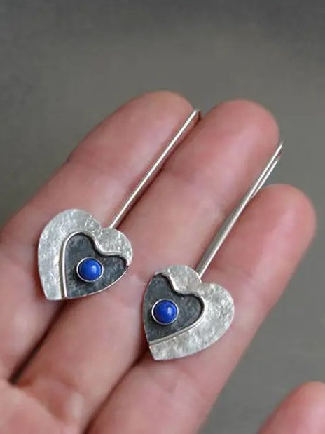 Boucles d'oreilles à motif de cœur en pierres précieuses naturelles de style ethnique, bijoux vintage QAG35