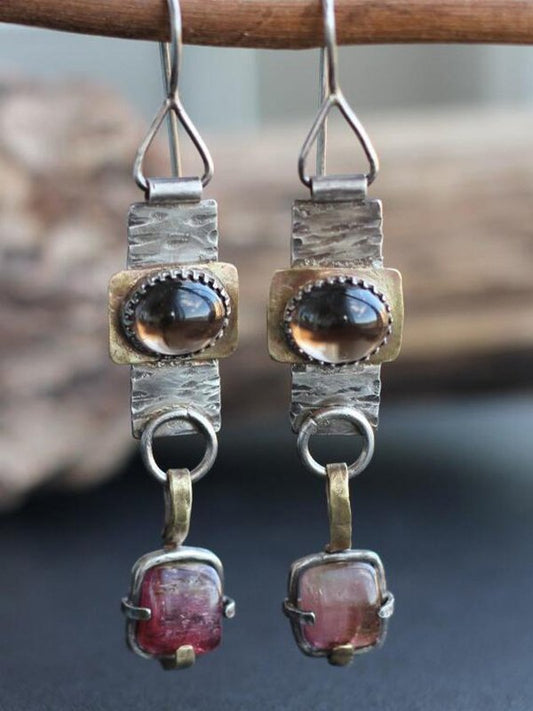 Boucles d'oreilles pendantes ethniques à motif géométrique en cristal naturel vieilli, bijoux vintage AD951