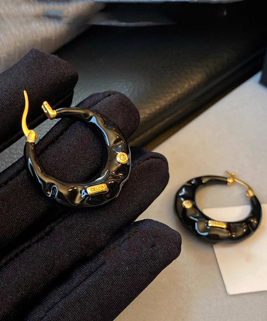 Boho Black Copper Alloy Enamel Drop Glaze C Shaped Hoop Earrings RA019