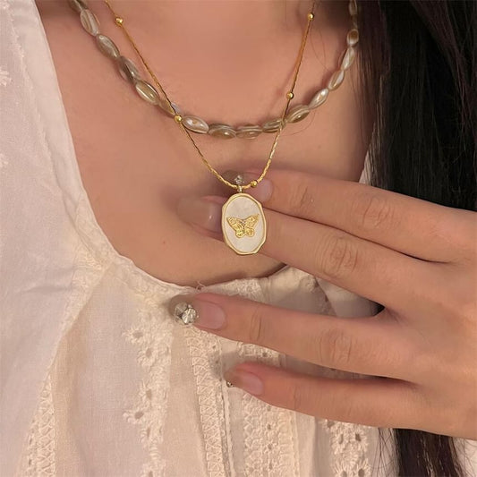 Butterfly Shell Alloy Necklace / Bead Necklace
