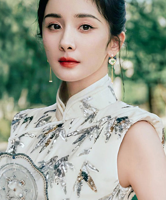Retro White Sterling Silver Overgild Pearl Tassel Drop Earrings QI073