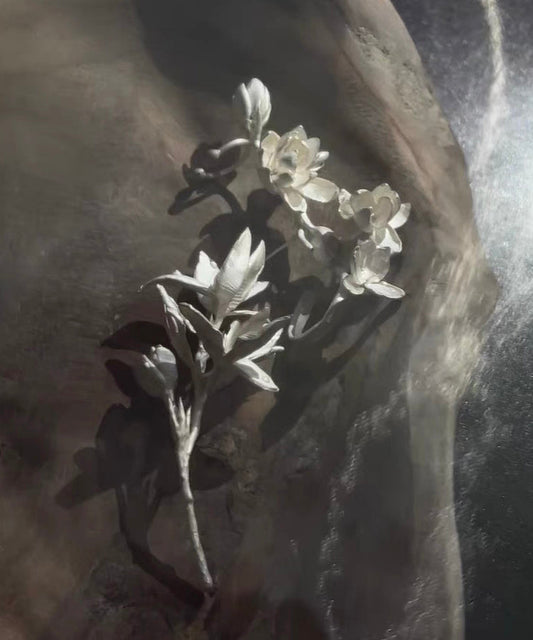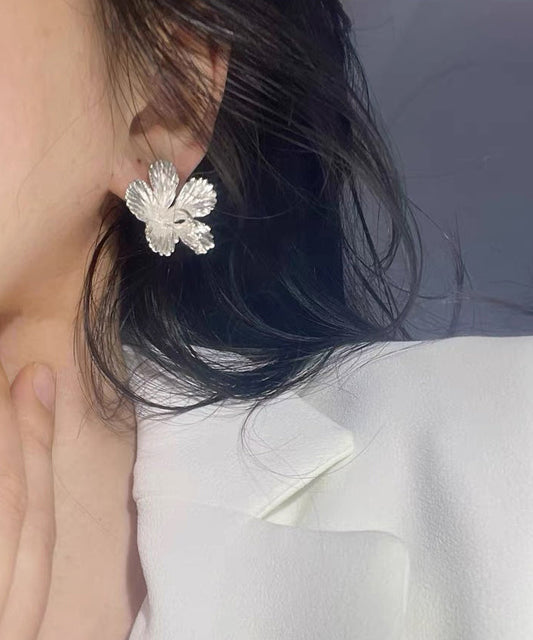 Boucles d'oreilles à tige vintage en argent sterling blanc avec fleur de jasmin blanche brûlée QQ070